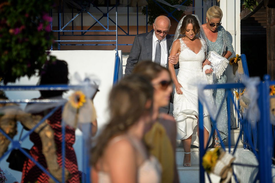 Vicky is a teacher and Dimitris is a musician. They both live Chicago but they love Greece as if they grew up here and that's why they spend every summer under the Greek sun. So, their wedding could not take place anywhere else in the world but Greece and could not have anything less than the warmth of the Greek spirit which moved several times. Mrs and Mr Dallas, always smiling through the ceremony, were married under the beautiful Greek sunlight among people they love and feasted beside the unique blue sea..